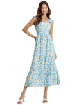 FEATURES: Sleeveless, Includes Two Pockets, Square Neck, Smocked Back, 3 Tiered Dress, Lightweight, Relaxed Fit And All Over Printed Pattern.