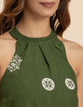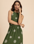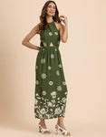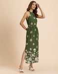 FEATURES: Sleeveless, Band Collar, A-Line Dress, Keyhole At The Back, Concealed Zipper, Slit At Side, Lightweight, Relaxed Fit And All Over Printed Pattern.
