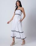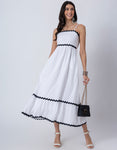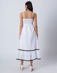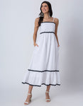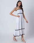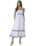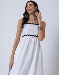 Features: Embrace summer style with this solid full-length cotton dress featuring zigzag lace details. The adjustable straps ensure a perfect fit, making it great for casual outings or beach days. Lightweight and breathable, this dress combines comfort and elegance effortlessly.
