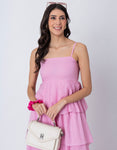 Features: Elevate your summer wardrobe with our Moomaya Chic Layered Frill Long Dress, perfect for resort getaways or brunch dates. This stylish cotton dress features delicate spaghetti straps and a smocked back for a flattering fit. The layered frill design adds a playful touch, making it a versatile choice for sunny days. Lightweight and breathable, this dress ensures you stay comfortable while looking effortlessly chic.