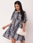 Features: flutter sleeves, back keyhole neck, a-line hem, short length, fabric belt and lightweight
