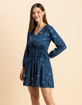 Tags: Printed Dress For Women, V-Neck Dress, Long Sleeves Dress For Women, Pleated Dress, Resort Wear, Stylish Dress For Women, Western Dress