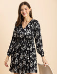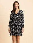 Tags: Printed Dress For Women, V-Neck Dress, Long Sleeves Dress For Women, Pleated Dress, Resort Wear, Stylish Dress For Women, Western Dress