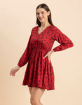 Tags: Printed Dress For Women, V-Neck Dress, Long Sleeves Dress For Women, Pleated Dress, Resort Wear, Stylish Dress For Women, Western Dress