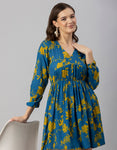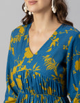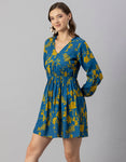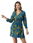 Tags: Printed Dress For Women, V-Neck Dress, Long Sleeves Dress For Women, Pleated Dress, Resort Wear, Stylish Dress For Women, Western Dress