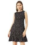 Features: sleeveless, frilled hem, round neck, high waist, short length, lightweight and all over printed pattern