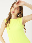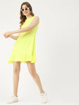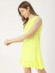 Features: sleeveless, frilled hem, round neck, high waist, short length, lightweight and all over Solid pattern
