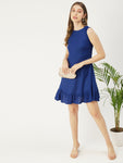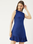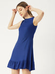 Features: sleeveless, frilled hem, round neck, high waist, short length, lightweight and all over Solid pattern