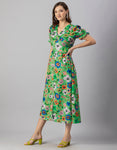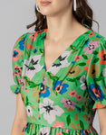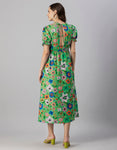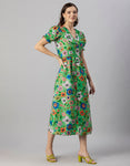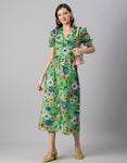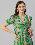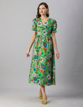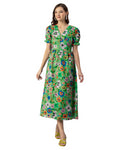Tags: Printed Dress For Women, V-Neck Midi Dress, Puffed Sleeves Dress For Women, Resort Wear, Vacation Dress, Midi Dresses For Women, Western Dress, Front Slit Dresses For Women, Calf Length Dresses