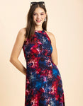 Features: Sleeveless, Halter Neck, Side Slit, Knee Length, Conceal Zipper, A-Line, Lightweight And Tie Dye Printed Pattern, Perfect For Beach Vacation Or A Resort Wear.