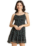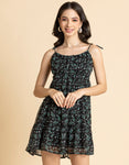 Features: Strappy Shoulders, Tiered, Round Neck, Flared, Short Length, Lightweight And All Over Printed Pattern