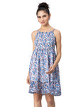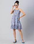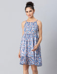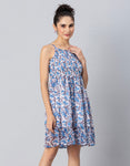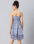Features: Strappy Shoulders, Smocked Bust, Sleeveless, Square Neck, Frilled Flared Bottom, Mini Length, Lightweight And All Over Printed Pattern