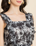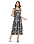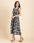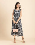 Features: Sleeveless, Ruffled, Square Neck, Ankle Length, A-Line, Lightweight And All Over Printed Pattern
