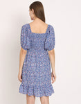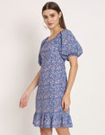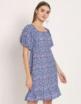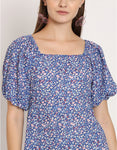Features: Puff Sleeve, Square Neck, Short Length, Ruffle Hem, Lightweight, All Over Printed Pattern.