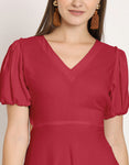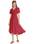 Features: Short Sleeve, V-Neck, Cut Out Styles Back, A-Line Style, Flared Hem, Lightweight, All Over Solid Pattern.