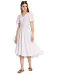 Features: Short Sleeve, V-Neck, Cut Out Styles Back, A-Line Style, Flared Hem, Lightweight, All Over Solid Pattern.