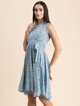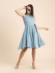Features: Sleeveless Dress, Smocked Waist, Knee Length, Lightweight And All Over Printed Pattern