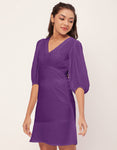 Tags: Solid Shift Dress For Women, Balloon Sleeve Dress, Solid Colors Dress, Partywear Dress For Women, V-Neck Short Dress, Women's Dresses Wrap Style, Evening Cocktail Dresses, Solid Color Dress For Women