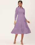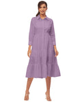 Tags: Tiered Dresses For Women, Solid Shirt Dress For Women, Button Down Collar Dress, Loose Swing Shirt Dress, Shirt Dress For Women Button Down, Elbow Sleeve Midi Dress