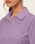 Features: 3/4Th Sleeve, Tiered, Strand Collar, Button-Down, Solid Colors.