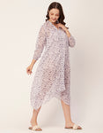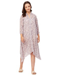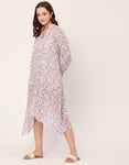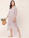 Features: Long Sleeves, V Neck, High-Low Hem, Lightweight, Sheer, Calf Length And All Over Printed Pattern