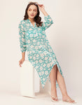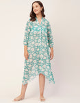 Features: Long Sleeves, V Neck, High-Low Hem, Lightweight, Sheer, Calf Length And All Over Printed Pattern