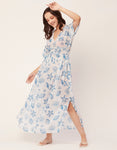 Tags: Long Maxi Dress For Women, V-Neck Dress, Printed Flared Dress, Summer Dress For Women, Poly Georgette Sheer Dresses, Short Sleeve Dress, Beach Dress For Women, Cover-Up Dress