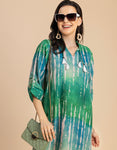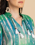 Features: 3/4Th Sleeve, Mandarin Collar, Tassels Detail, Loose Fit, High Low Hem, Knee Length, Loose Fit Lightweight And All Over Printed Pattern.