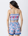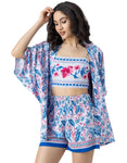 Features: Spaghetti Strap Crop Top With Smocked Back, Elastic Waist Shorts That Includes 2 Pockets, Matched With Shrug Coverup, Lightweight, Regular Fit, All Over Printed Pattern.