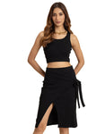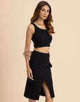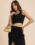 FEATURES: Sleeveless Crop Top, Wrap Style Skirt With Elastic Waist, Bodycon Fit, Lightweight.