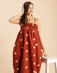 Features: Spaghetti Strap, Square Neck, Gathered, Sleeveless, Loose Fit, Maxi Length, Lightweight And Polka Dots Print Pattern