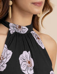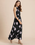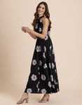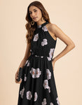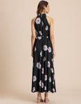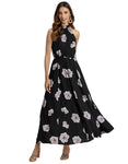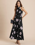 FEATURES: Halter Neck, Fit And Flare, Maxi Dress, Concealed Zipper, Keyhole At Back, Lightweight, Regular Fit, Resort Dress, And All Over Printed Pattern