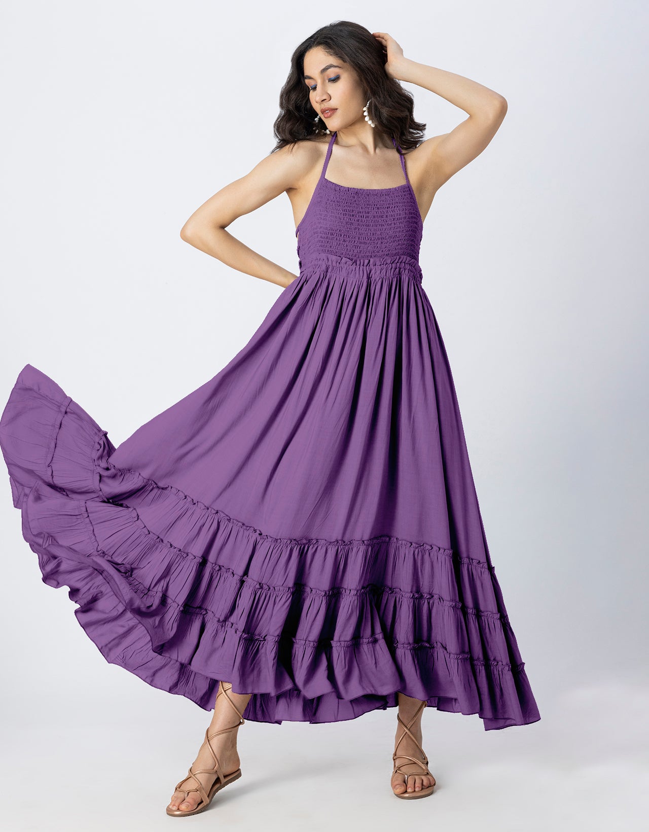 Features: Soft Rayon Fabric, Maxi Length, Halter Neck, Backless Style, Perfect For Beach Vacation