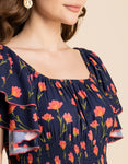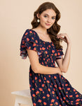 Features: Short Sleeve, Square Neck, Flared Hem, Side Slit, Tiered Style, Long Length Lightweight And All Over Printed Pattern.