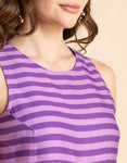 Features: Sleeveless, Round Neck, Loose Fit, Stripe Pattern, Casual Style, All Over Printed Pattern.
