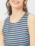 Features: Sleeveless, Round Neck, Loose Fit, Stripe Pattern, Casual Style, All Over Printed Pattern.
