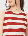 Features: Sleeveless, Round Neck, Loose Fit, Stripe Pattern, Casual Style, All Over Printed Pattern.
