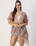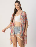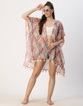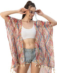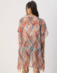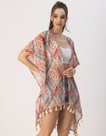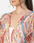Features: 3/4Th Sleeves, V Neckline, Relaxed Fit, Regular Length, Sheer Shrug, Lightweight, All Over Printed Pattern.