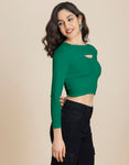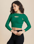 Tags: 2 Pcs Top For Women, Full Sleeves Top, Round Neck Top, Solid 2 Pcs Top For Girls, Crop Length Tops For Women, Sporty Crop Top, Moomaya Tops