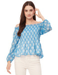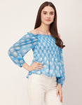 Tags: Printed Off-Shoulder Tops, Smocked Waist Tops, Full Sleeve Tops For Women, Women Casual Tops, Summer Tops, Resort Wear Tops, Vacation Tops