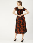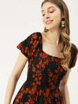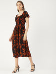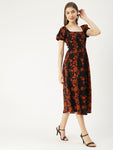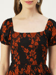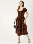 Features: short puff sleeves, round hem, square neck, ankle length, high waist, lightweight and all over printed pattern