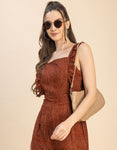 Features: Sleeveless, Square Neck, Full Leg Jumpsuit, Zip, High Waist, Regular Fit, Lightweight, All Over Printed Pattern.