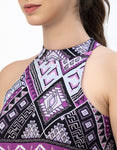 Features: Long Sleeves, V-Neck, Twist Knot Style, Color Block Pattern.
