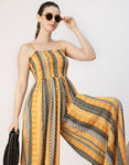 Features: Sleeveless, Halter Neck, Regular Fit, Full Leg Jumpsuit, Lightweight, Chic Casual Wear Tribal Print Pattern.