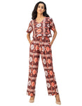 Features: Short Sleeves, V-Neck, Full Leg Jumpsuit, Lightweight, All Over Printed Pattern, Chic Boho Style.