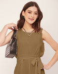 Features: Sleeveless, Round Neck, 3/4 Jumpsuit, Zip.