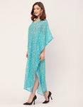 Features: Bat Wing Sleeves, Maxi Length, V-Neck, Relaxed Fit, Sheer Dress, Lightweight, All Over Printed Pattern.
