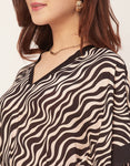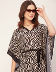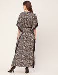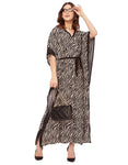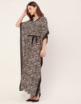Features: Bat Wing Sleeves, Maxi Length, V-Neck, Relaxed Fit, Dress With Drawstring, Lightweight, All Over Printed Pattern.