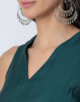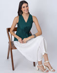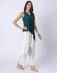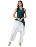 Features: Features a sleeveless V-neck kurta with an asymmetric cut hem and a trendy color-block style. The kurta Includes a slight elastic gathering below the bust for a flattering fit. Paired with elastic waist pants that come with convenient pockets, this set is perfect for a chic, comfortable look.