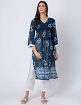 Features: This Tie-Dye Print Sheer Kurta and Pant Set features a V-neck sheer kurta with delicate lace detailing on long bell sleeves, gathers at the waist, and elegant side slits, paired with lace-accented half-lined pants that have an elastic waist and convenient pockets for added comfort.